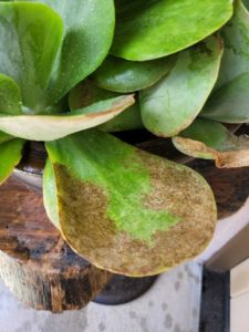 aloha my kalanchoe lucaie plant was grwoing very well with large green healthy leaves until recently I noticed the petals develpoed brown /rusty col patches.