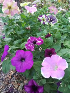These petunias came up in a pot from last year, they made exciting new colors by cross-pollinating! What a surprise….